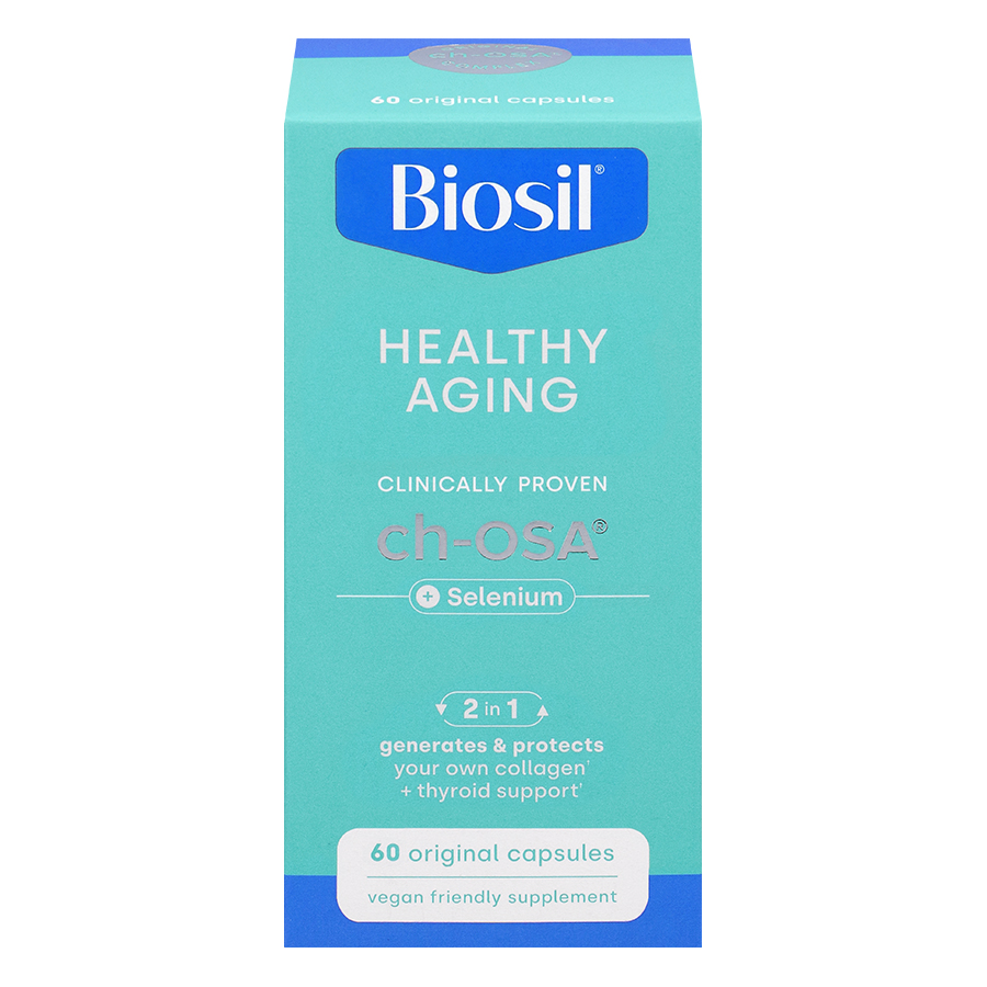 Iepazīstieties ar Biosil® Healthy Aging – atzīts par vienu no 2023. gada labākajiem jaunajiem produktiem, ko atzinis ASV biznesa izdevums Vitamin Retailer Magazine! BioSil panākumu noslēpums? Gadu pieredze, ieguldījumi zinātniskajos pētījumos un dziļa vēlme palīdzēt cilvēkiem atklāt savu dabisko skaistumu. Biosil® Healthy Aging ir unikāls ch-OSA® un selēna komplekss. Patentētā ch-OSA® formula sastāv no bioloģiski aktīvas silīcija formas – ortosilīcijskābes (OSA), kas stabilizēta ar holīnu (ch). Selēns ir spēcīgs antioksidants, kas aizsargā šūnas no brīvo radikāļu izraisītiem bojājumiem un palīdz aizsargāties pret oksidatīvo stresu, kas saistīts ar novecošanu. Tas arī veicina matu un nagu skaistumu un veicina normālu vairogdziedzera – vienas no galvenajām organisma “hormonu fabrikām” – darbību.